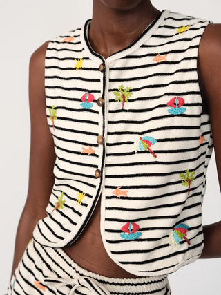 "Reflective of natural Australian beauty, palette presents hues inspired by the rich and diverse landscape with earth tones, dusted pastels and hyper-pigment pulses. Transparencies and opacities keep conversation, with sunbleached qualities meeting vivid manifestations of hand-painted prints. The artist is honoured in depictions of native flora, intricate blossoms and technical sketched placements over melting ombré. Light flashes in angular qualities, chiselled chromatics and sequin-stacked shine. Ebbing. Flowing. Changing. Scaling. Rebel. Rebel."