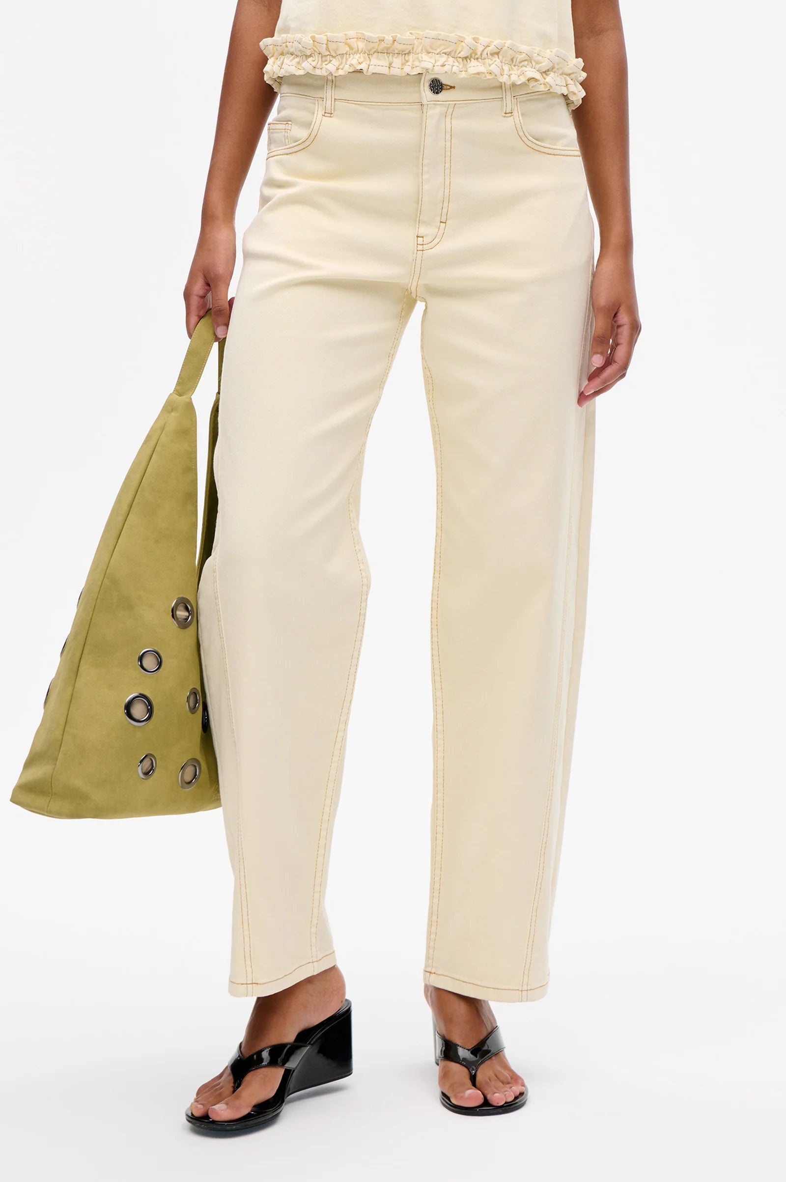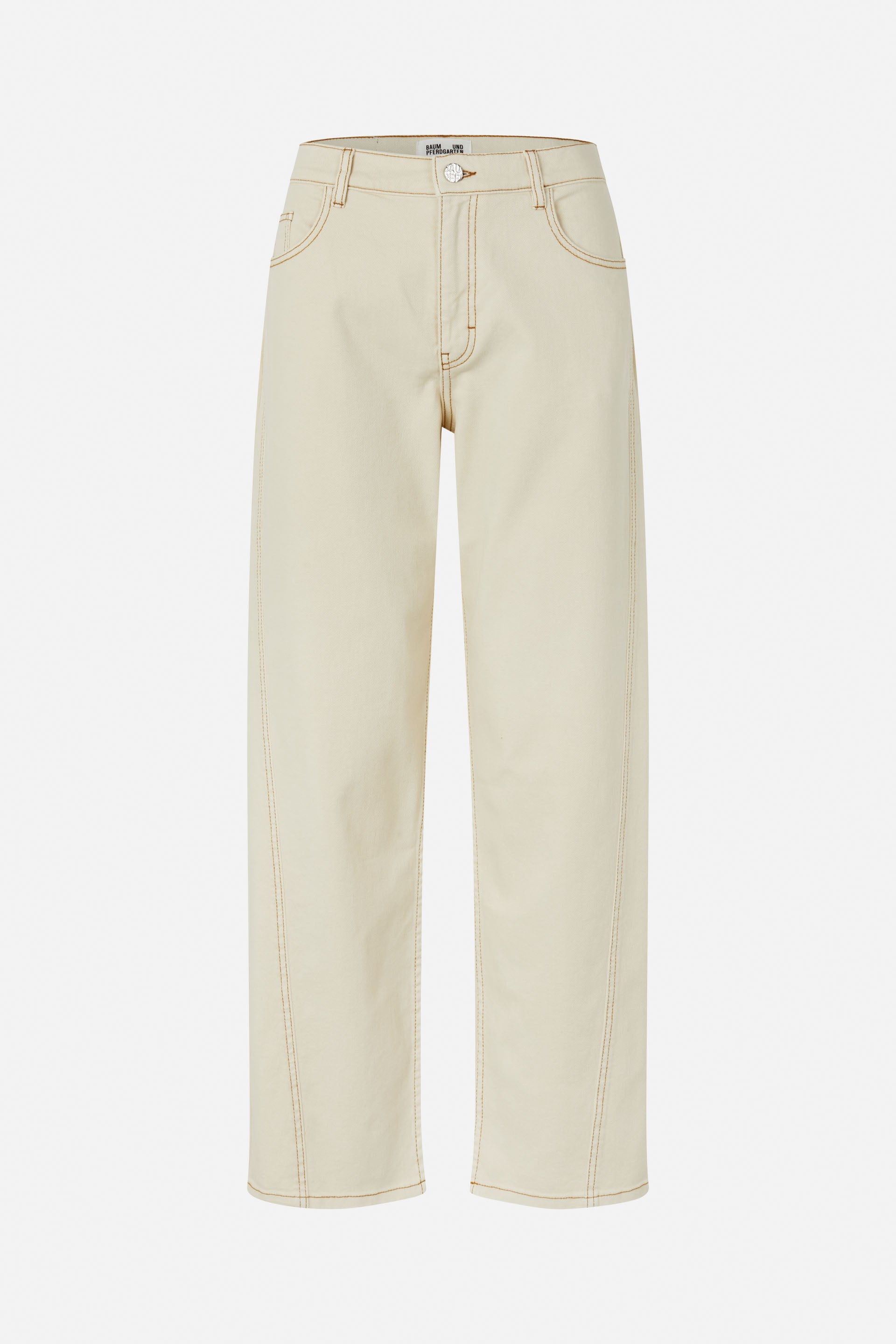 The Niaka Jeans are made in organic cotton twill. The denim jeans have a high waist and relaxed fit with subtly rounded barrel legs and decorative stitching and classic details like belt loops and a 5-pocket design.