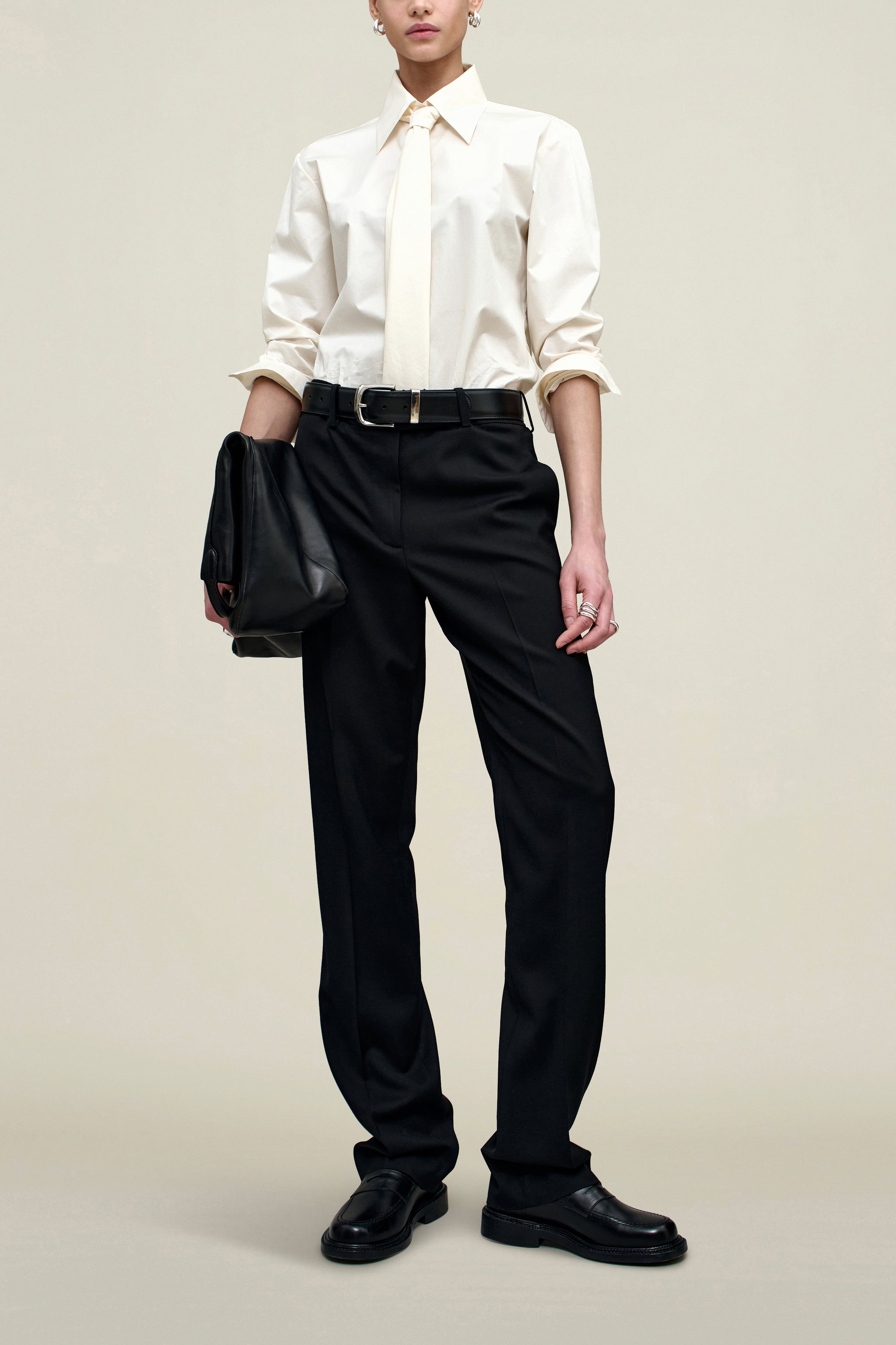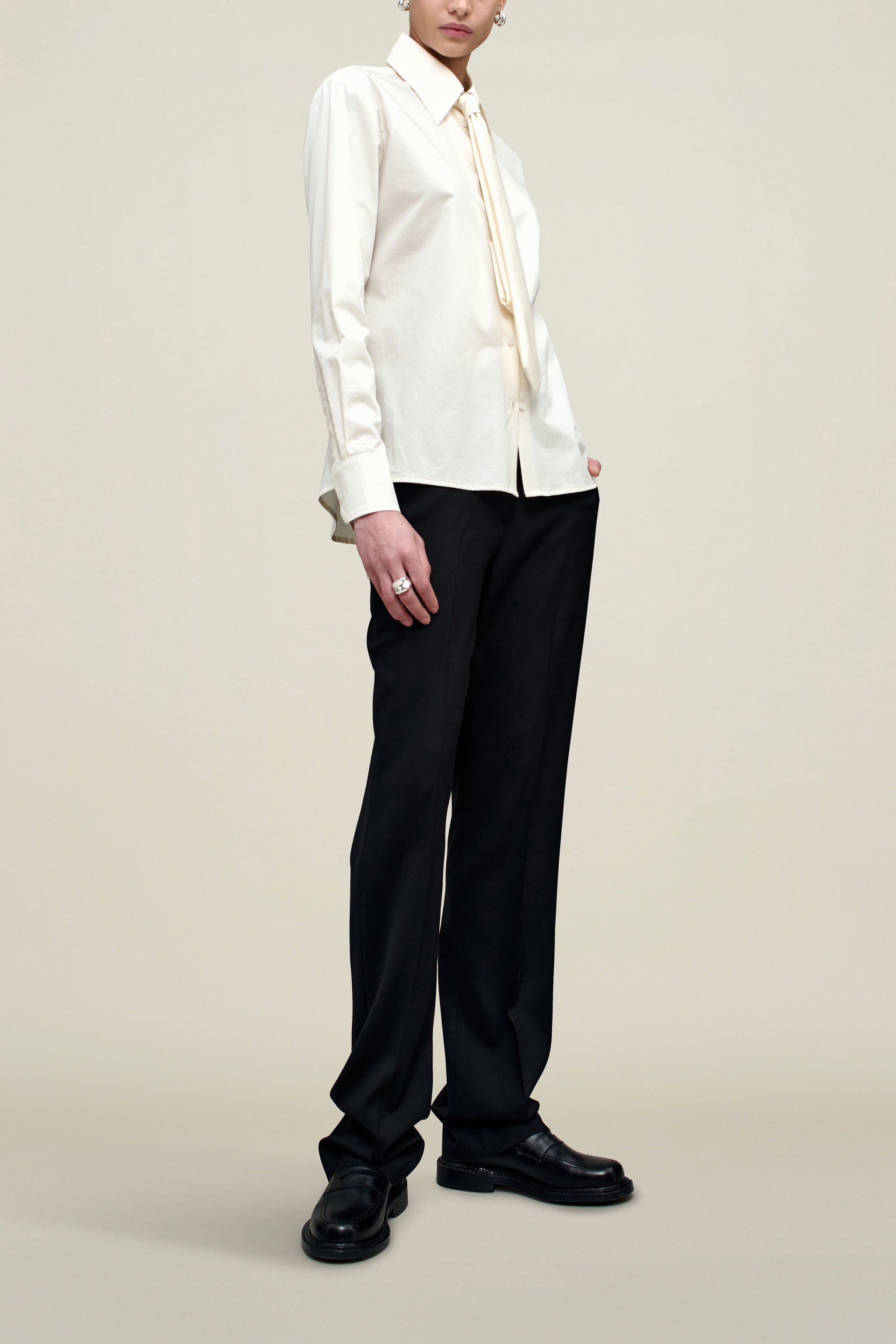 Button down with pointed collar. Styled with a matching tie to be worn open or tied at the neck, fully detachable and secured with a loop under the back collar. Made in beautiful soft cotton, perfect for year round wear.