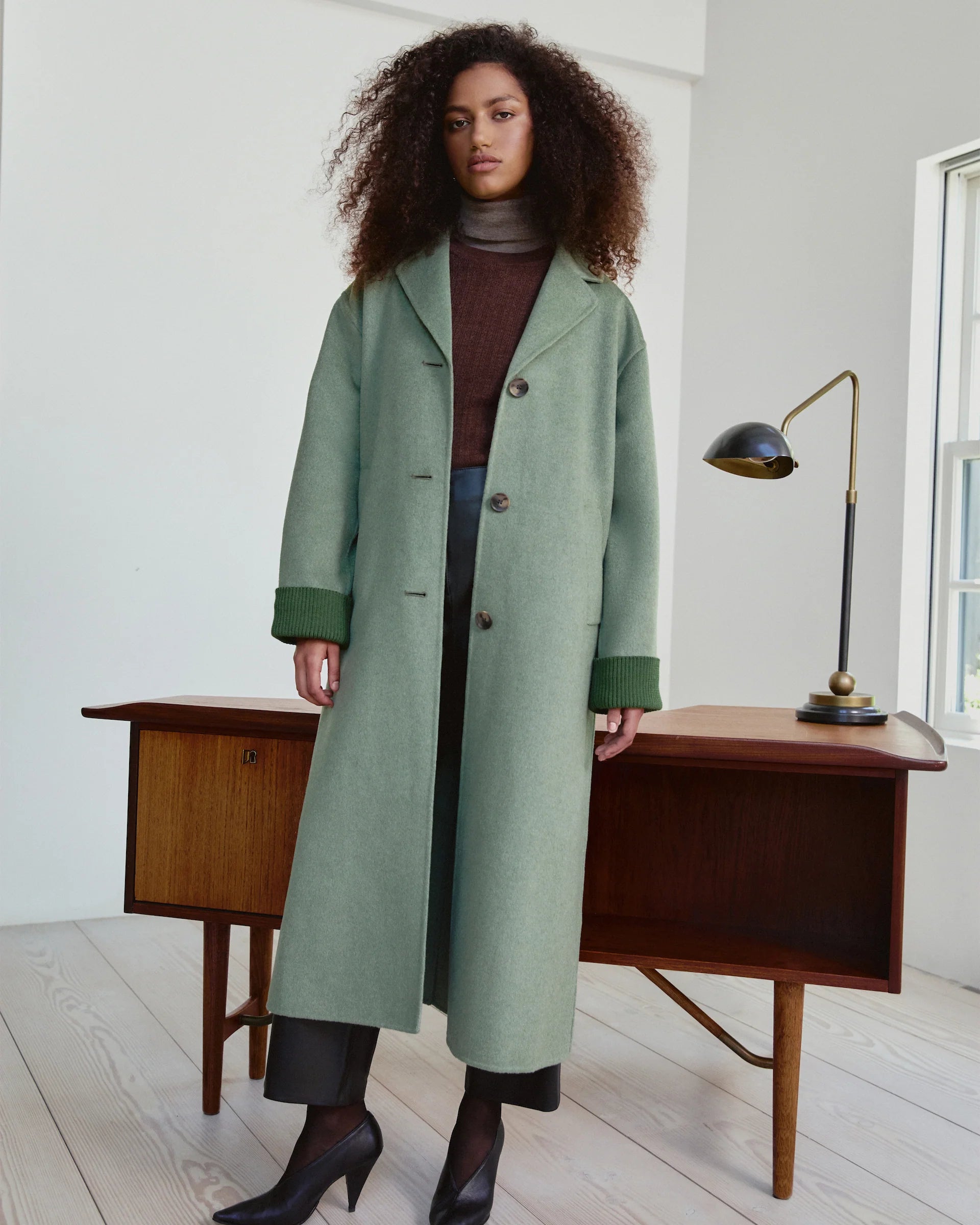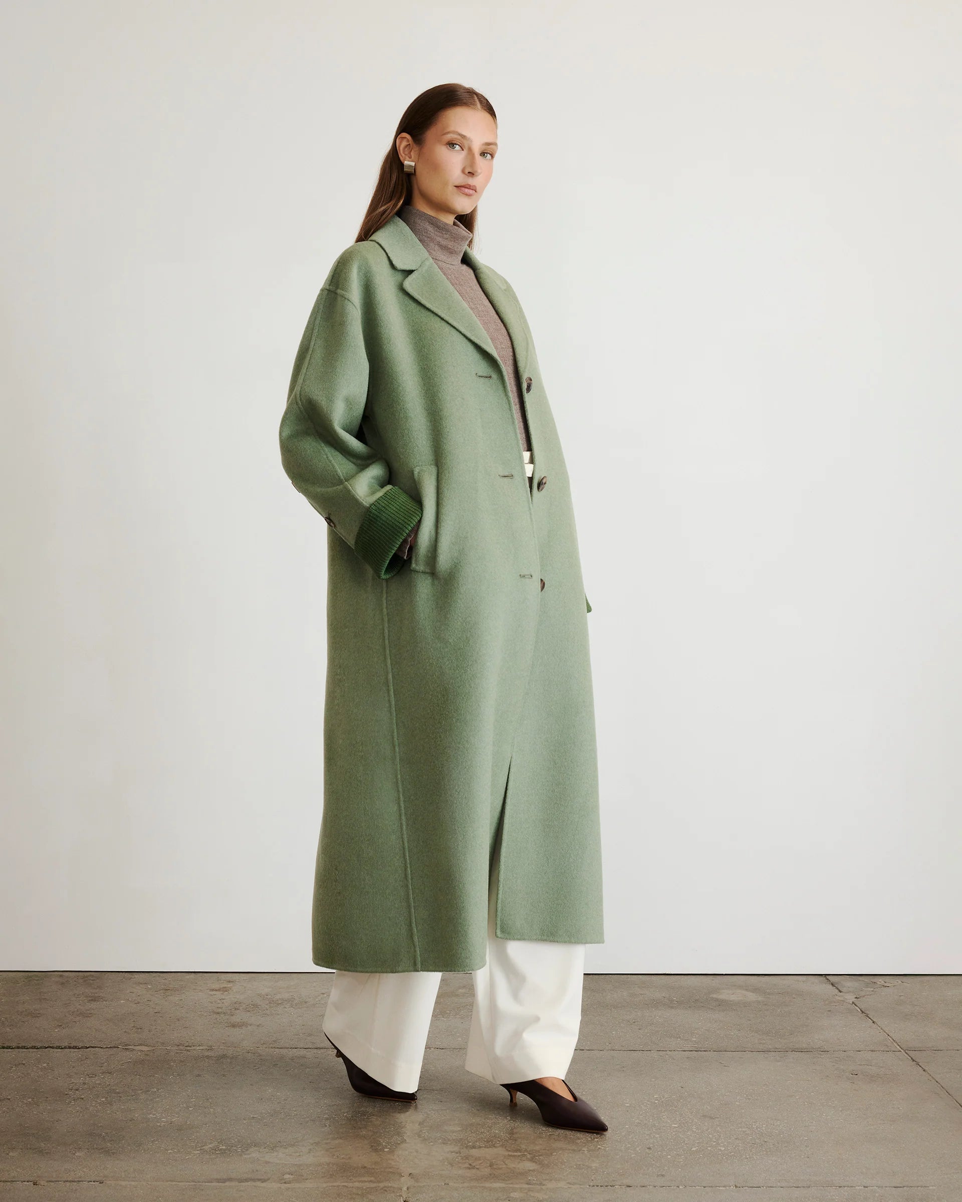 The season's must-have coat, the Bridget Coat is a one-of-a-kind silhouette. Designed in a luxe double face mélange wool, Bridget is our take on classic outerwear with a twist. Featuring a slight oversized fit, collared neckline, front pockets, and rib knit cuffs, the Bridget Coat is an easy way to complete your Fall look.