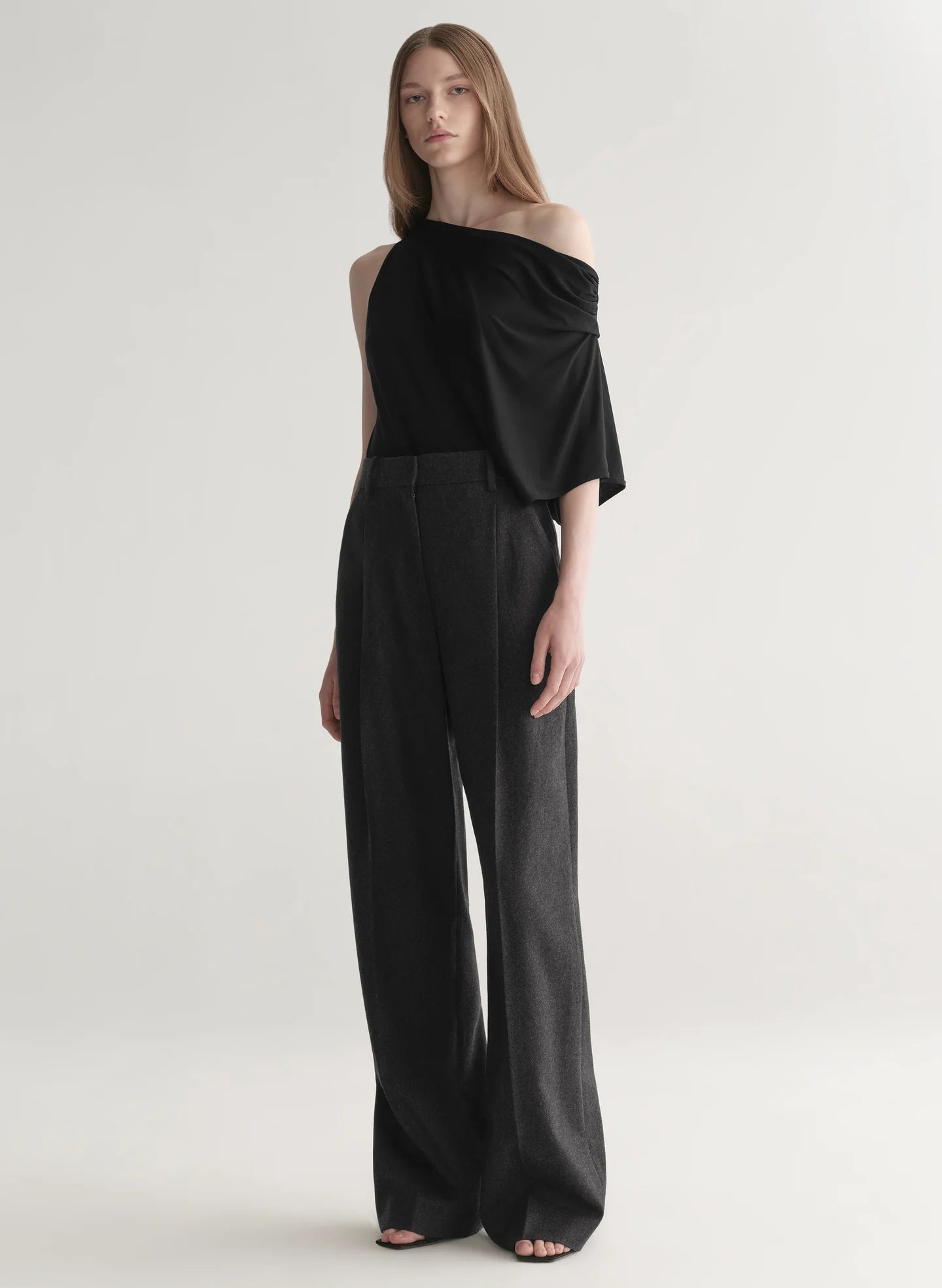 A sleek menswear-inspired trouser perfect for pairing with everything from fitted blazers to silk blouses. Rendered in our wool gabardine and finished with single front pleats, the mid-rise silhouette is both refined and effortless.