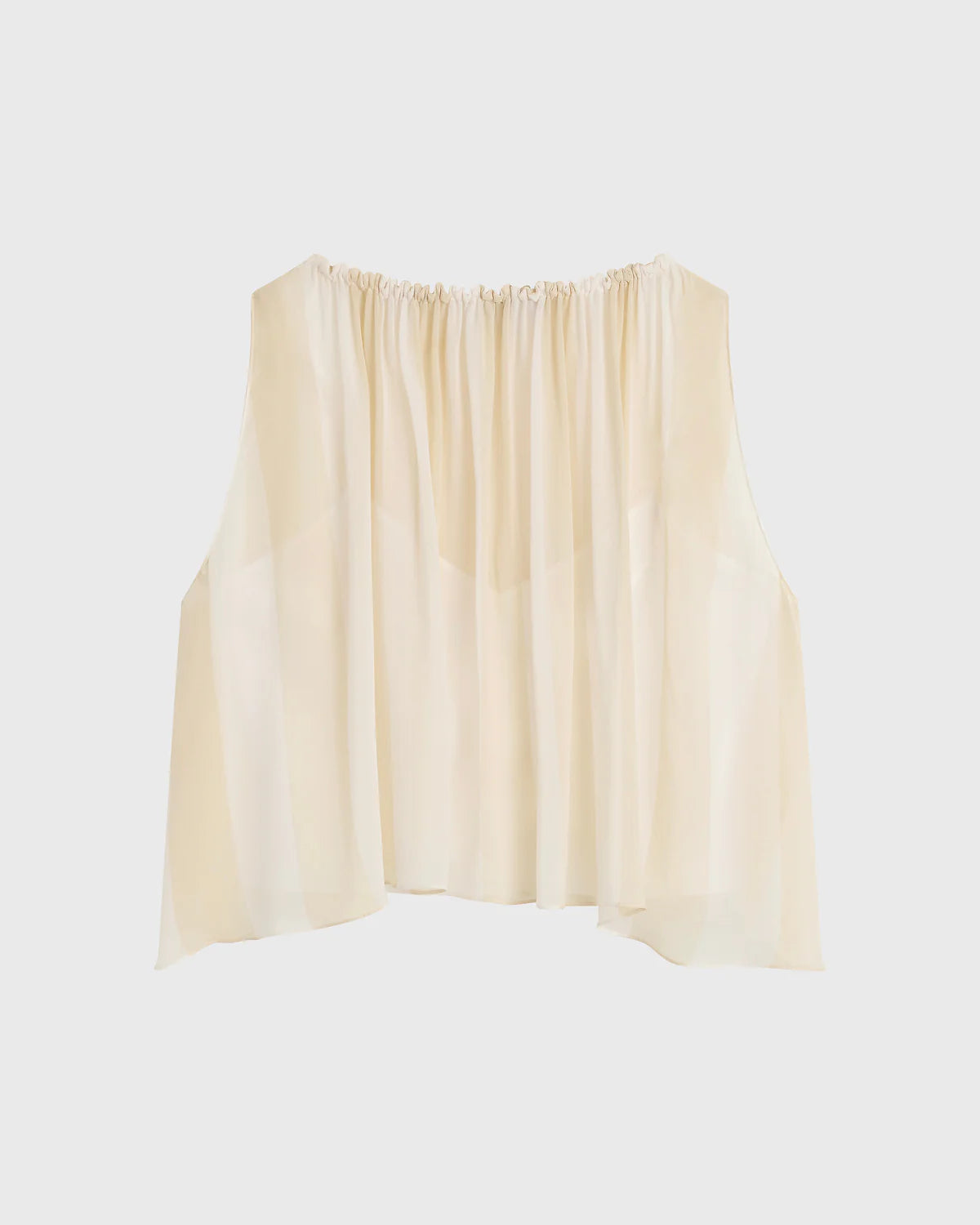 Light and ethereal, the limited-edition Capri Silk Gathered Top in ecru stripe features an elasticised neckline that allows soft volume and a relaxed draped hem. Layered over a slip, it offers effortless elegance and warm weather ease.