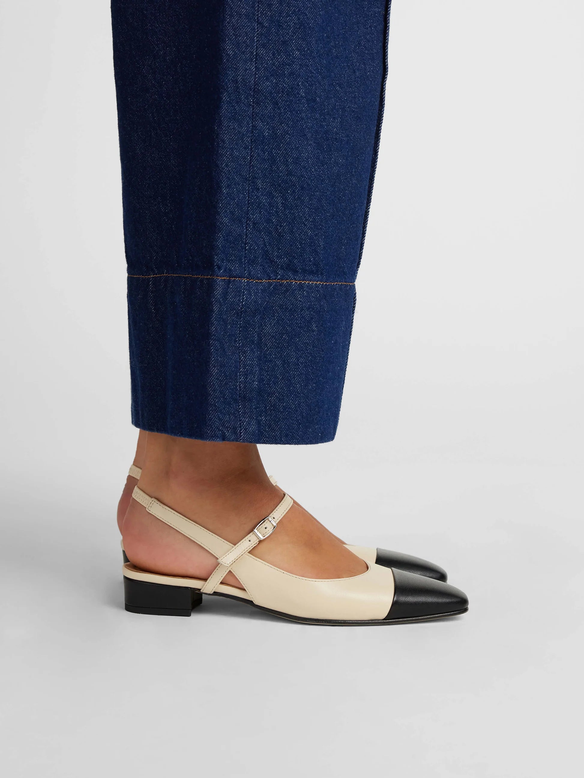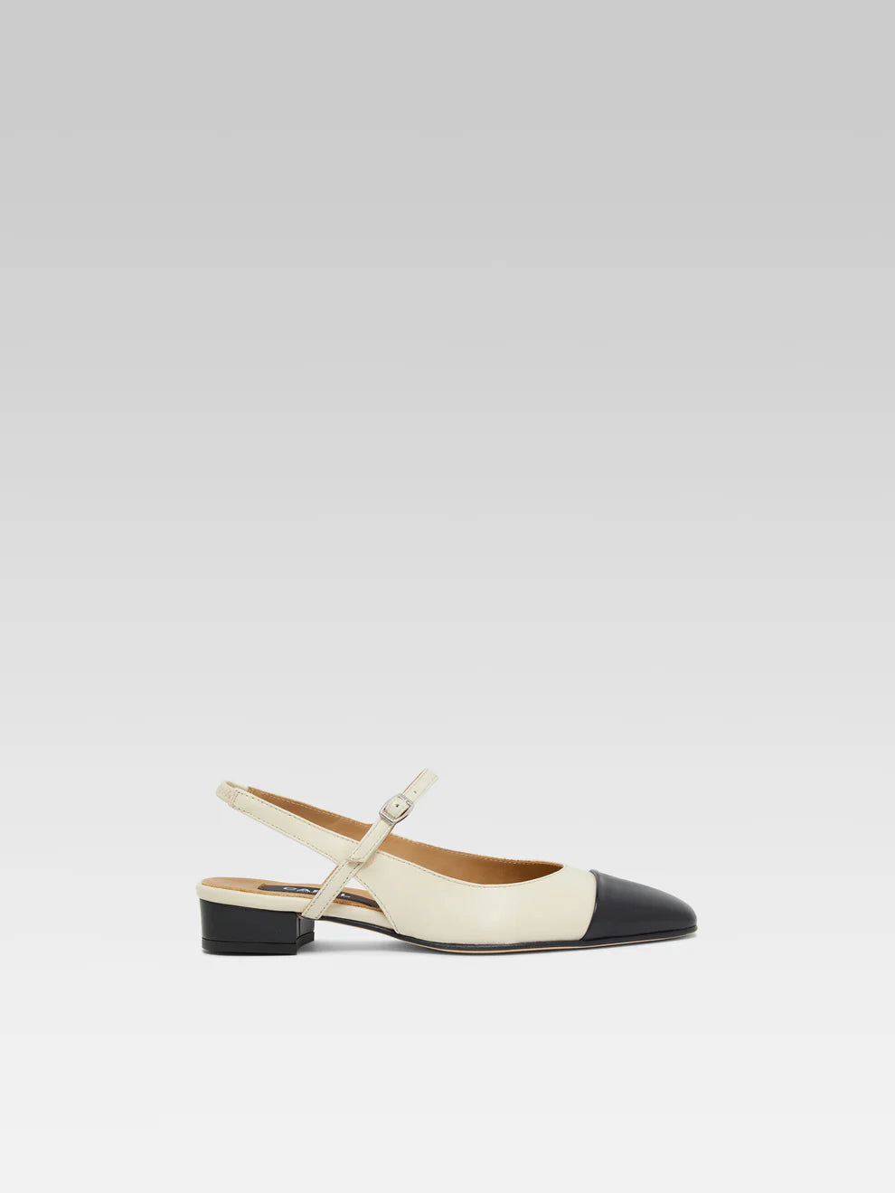 The Oceano model is a slingback which is characterized by a signature straight toe, a play of colors and materials illustrating the DNA of the Carel house. Its adjustable strap on the top elegantly dresses the foot. With a ballerina feel, the leather sole is accompanied by a non-slip rubber pad personalized with Carel's iconic canework adding flexibility to the fit.