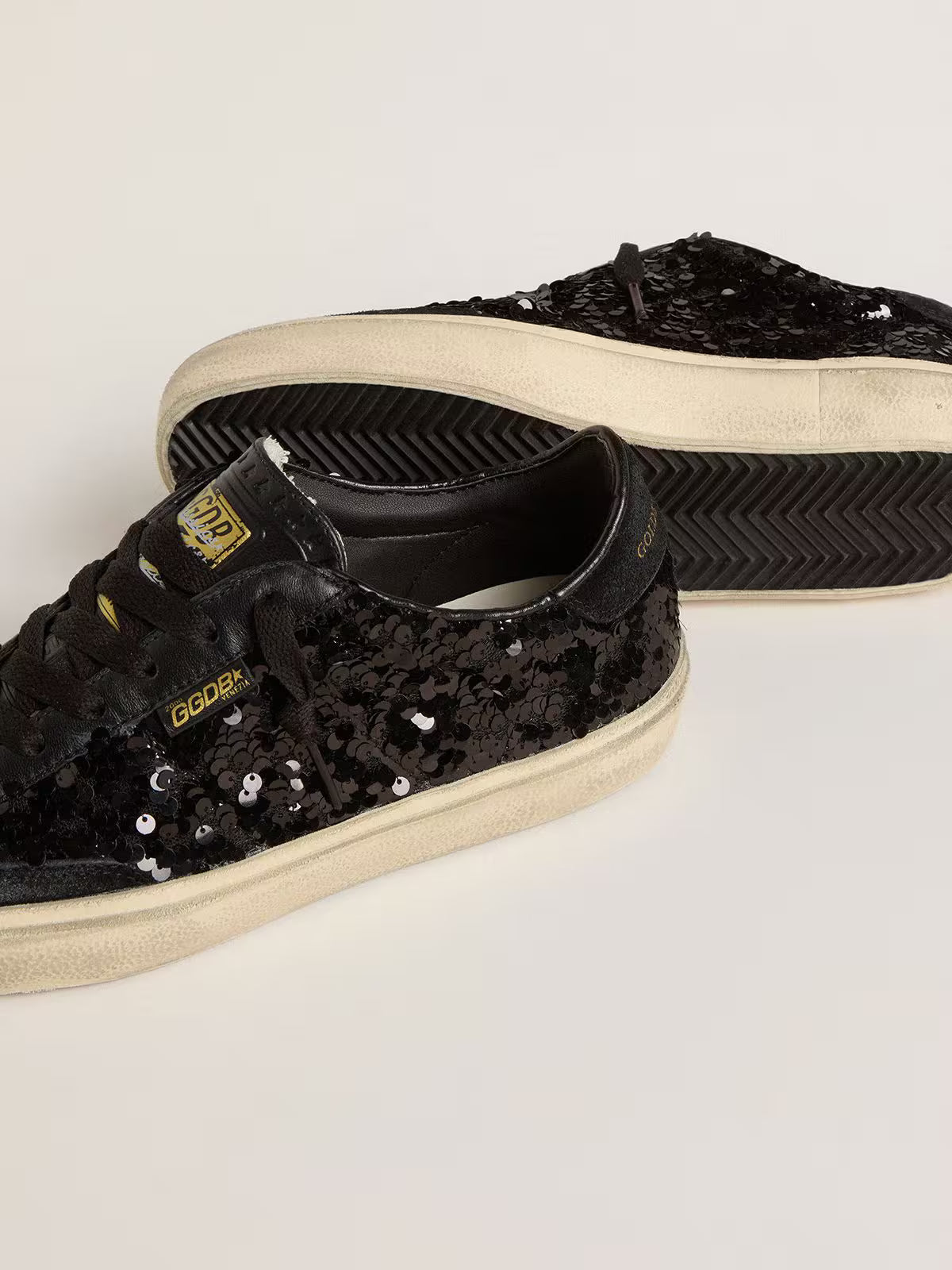 Starting from the 60s, the Soul Star has transformed a sneaker from a performance tool into a life companion. This women's model features a black sequin upper with a total black effect accentuated by a black nappa leather tongue and inserts. The black suede heel tab and toe and black laces add the finishing touch.