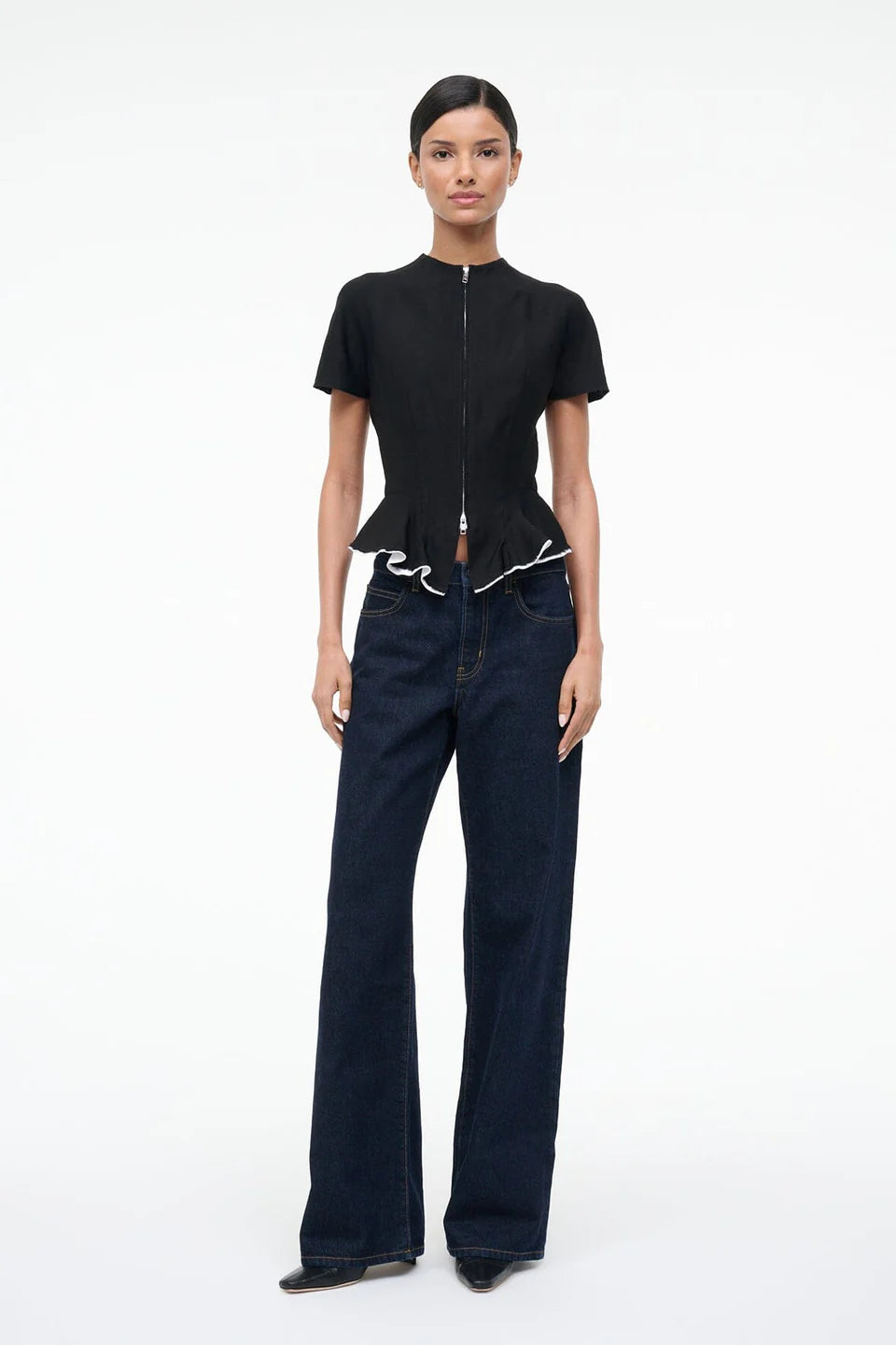 An architectural silk wool top with deconstructed peplum hem. The Maelle Top features french seams and an exposed front zipper closure.