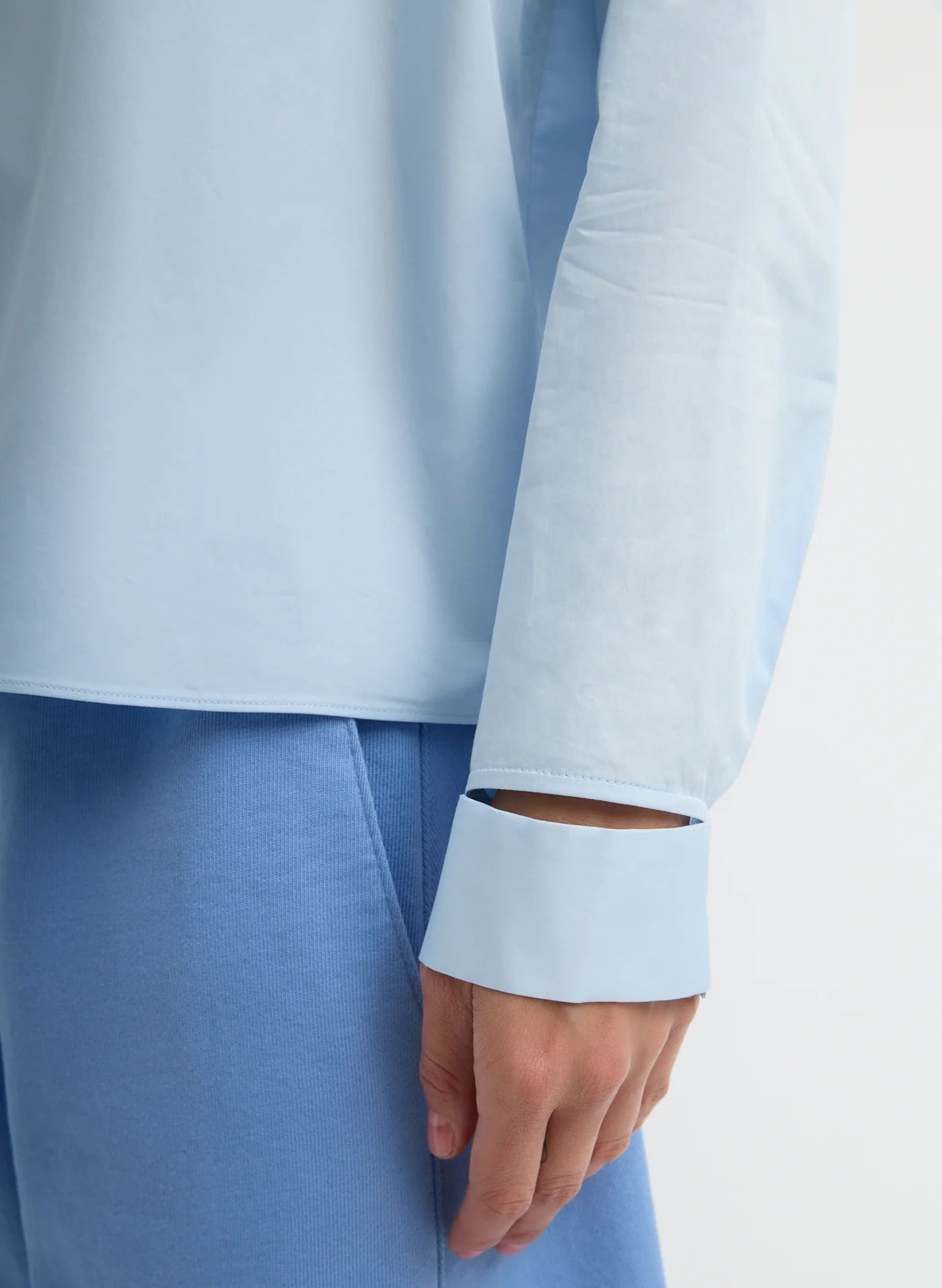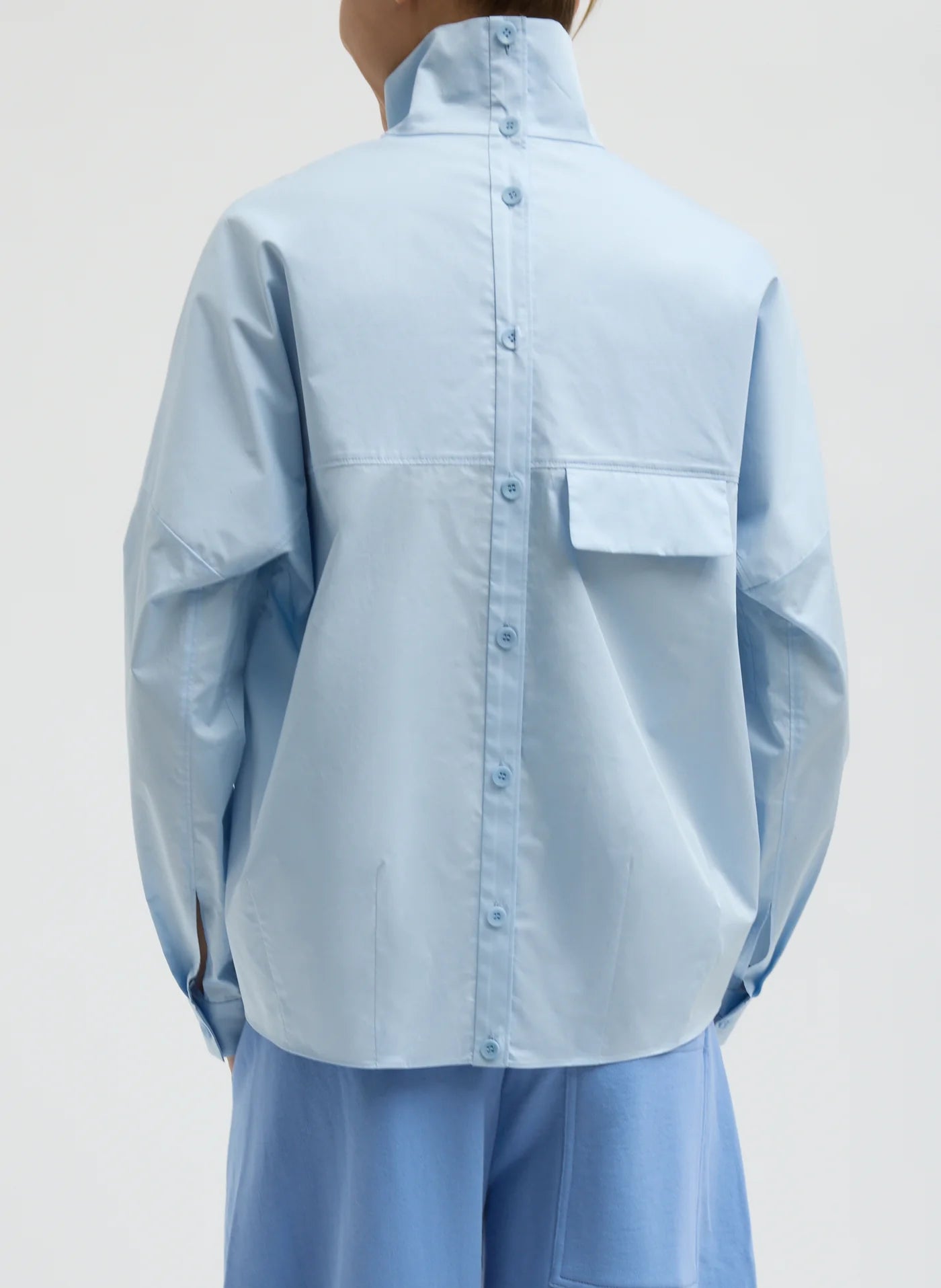 Crafted from organic cotton poplin, the Eco Poplin Funnel neck Dolman Top balances structure and ease. Featuring relaxed dolman sleeves with cutouts at wrist, a funnel neckline, and button-back detailing with a functional back pocket, this piece redefines utility through a refined lens. Style yours frontwards or backwards!