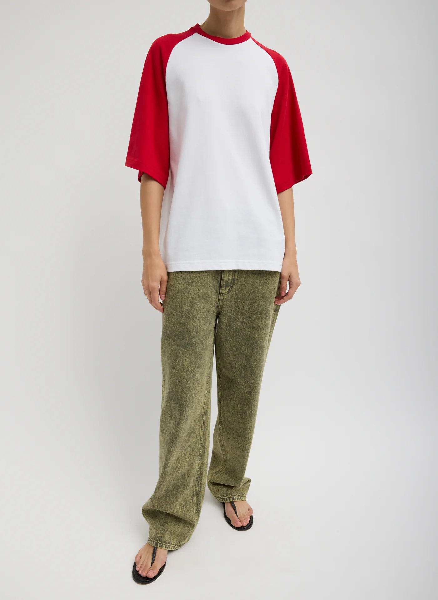 The Perfect T Baseball T combines sporty ease with sculpted proportion. Crafted from 100% cotton in a structured, medium-weight jersey, it features a high neckline, eased shoulder, and subtle cocoon back for an intentionally relaxed fit.