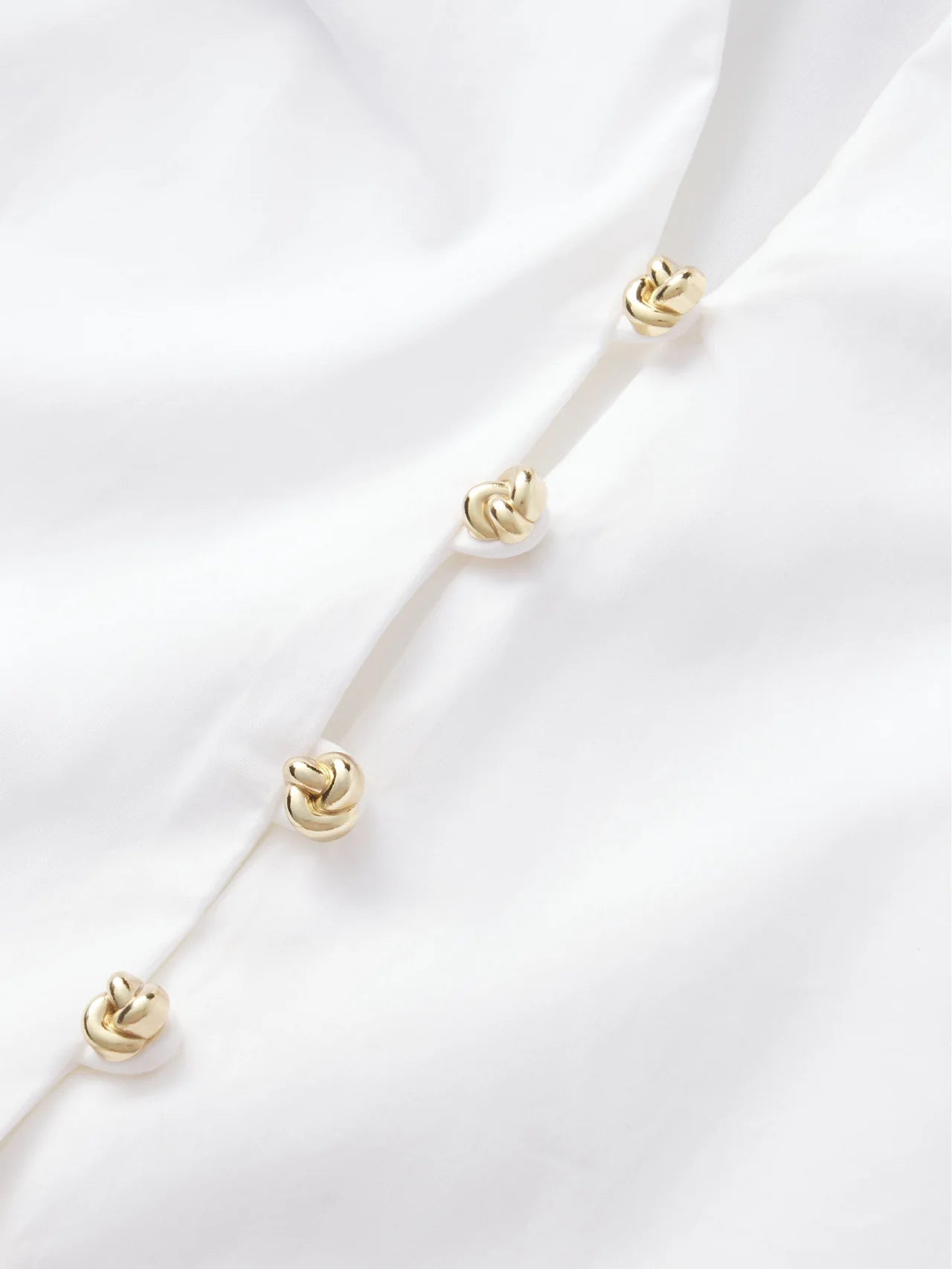 The Dramatic Sleeve Blouse is crafted from 100% organic cotton and designed with a sculptural bubble sleeve, mini gold knot buttons, and a soft V-neck drape for a standout, feminine silhouette.