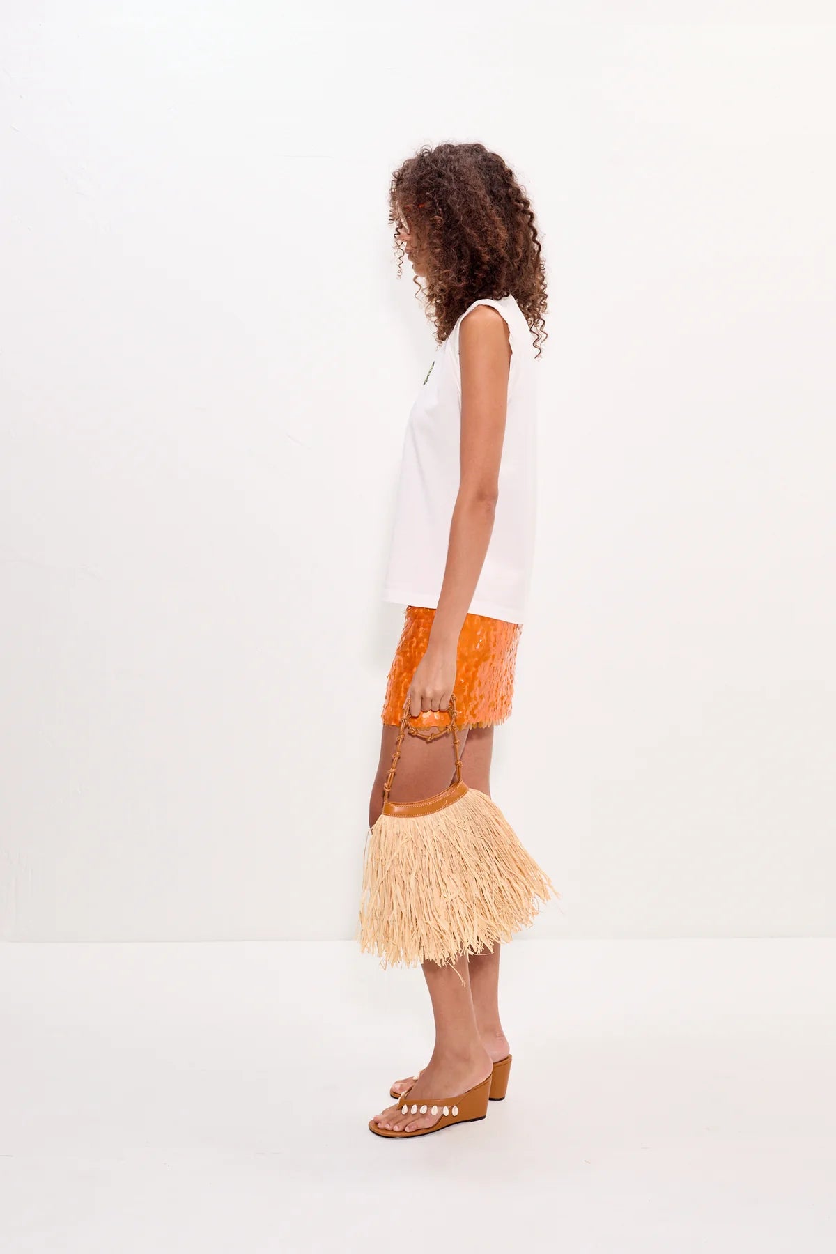 Easy, everyday cotton tank top with a boxy fit and rolled sleeves. Signed off with an iconic SIMONMILLER digitally printed banana graphic.