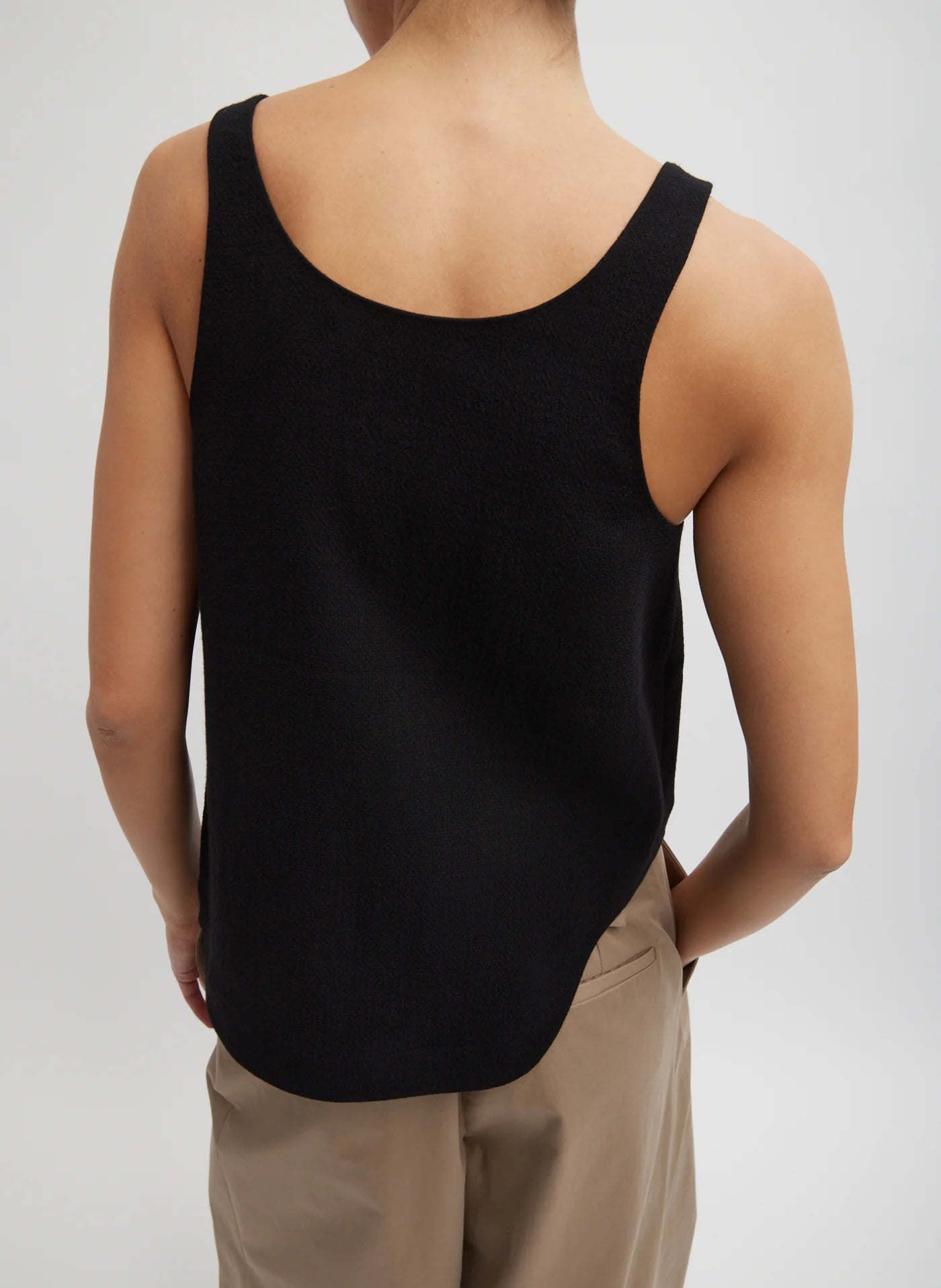 Crafted from couture-like Italian wool crepe with twisted yarn, the Melee Crepe Tank Top will stand the test of time not only for its style but also for its luxurious fabrication. The top features a curved hem and scoop neck line for peak modernity.