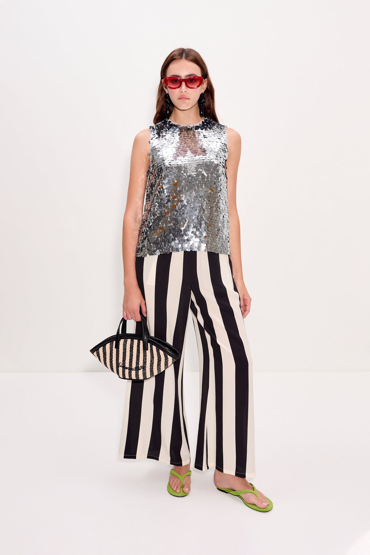 Lightweight printed rayon crepe wide-leg pant with an effortless drape and refined pull-on waistband. Features an elastic waist for ease and comfort.