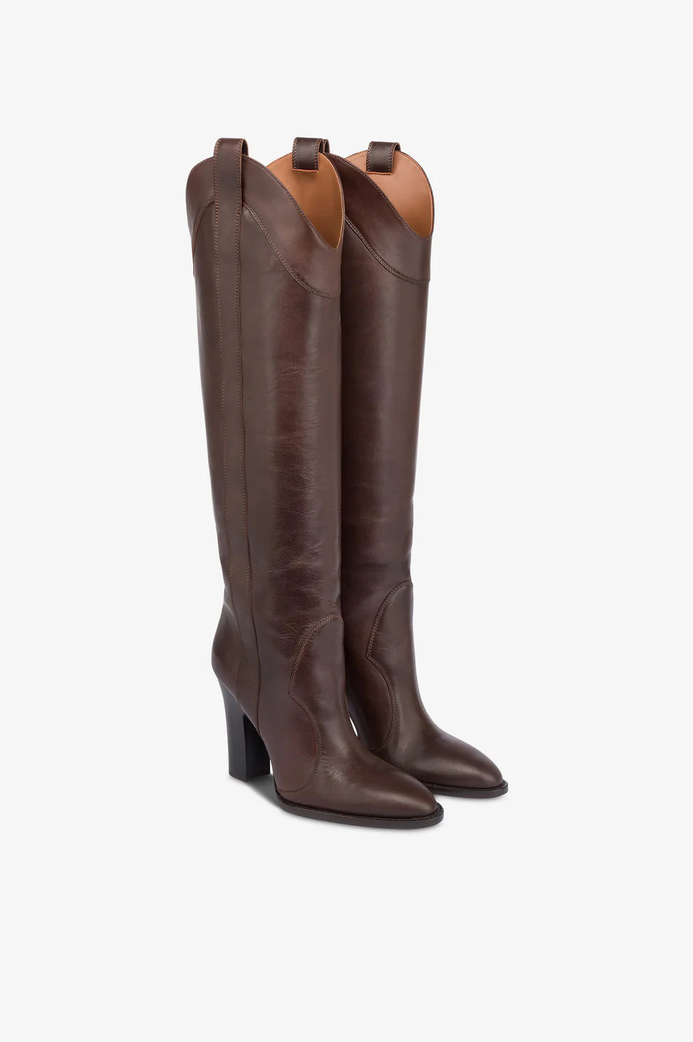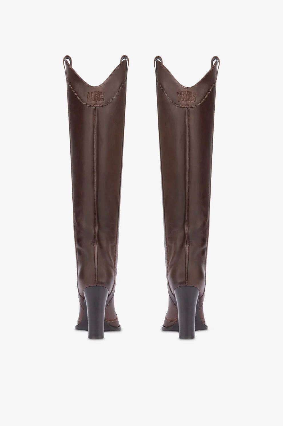 Round-toe boots in ebony calf leather with 'Paris Texas' detail on the back. Covered chunky heel. Made in Italy.