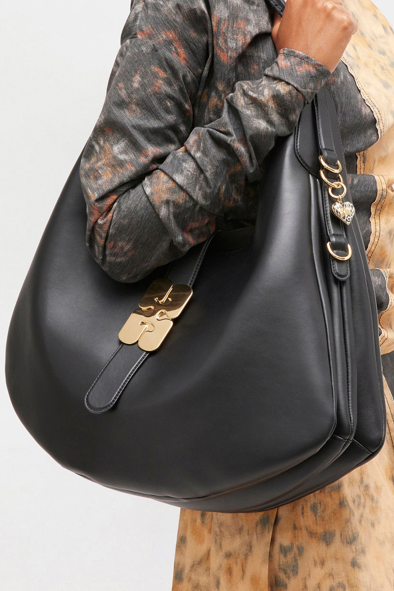 This keyring features a gold-toned clasp and a GANNI Butterfly logo.