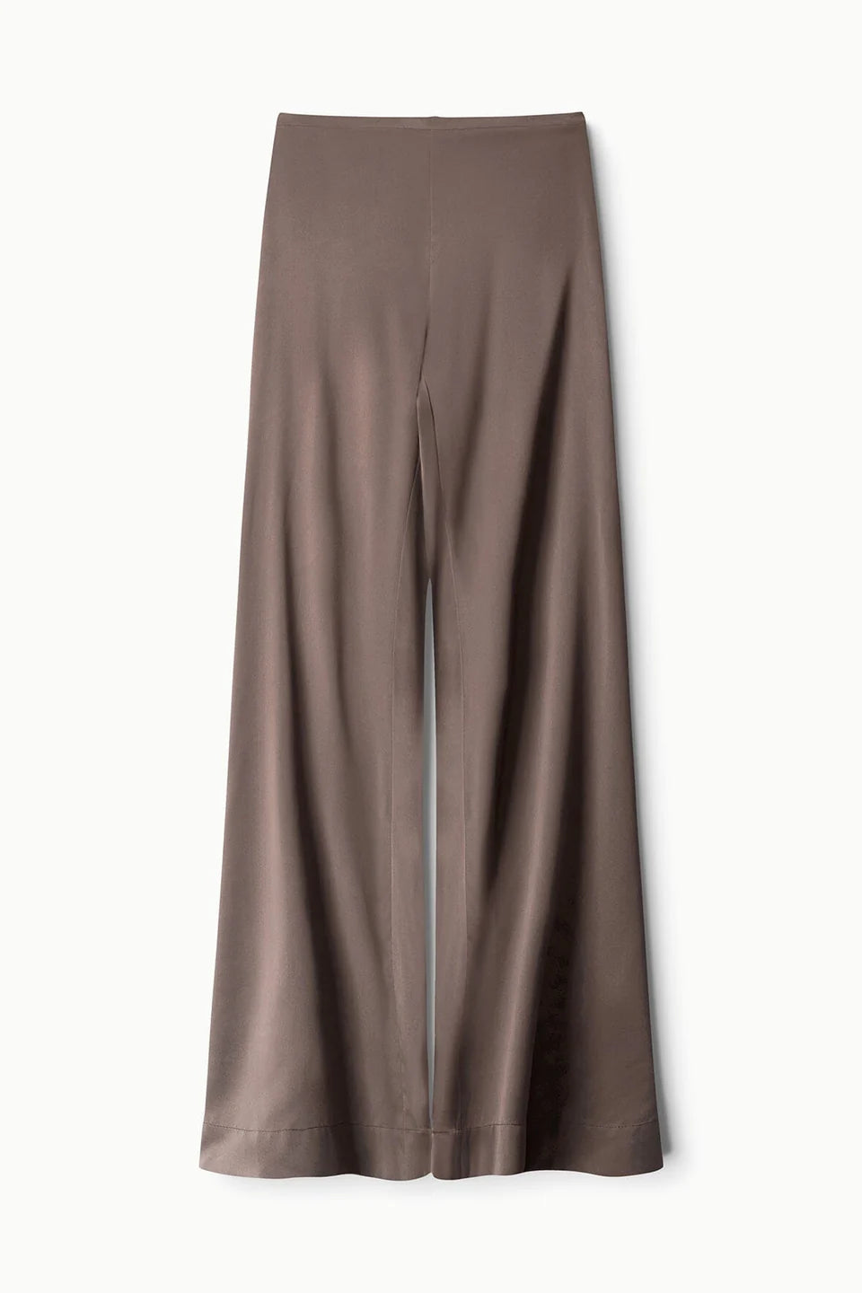 The Stroll Pant is an easy-fitting straight leg pant with an elastic waistband crafted from a stretch silk satin.